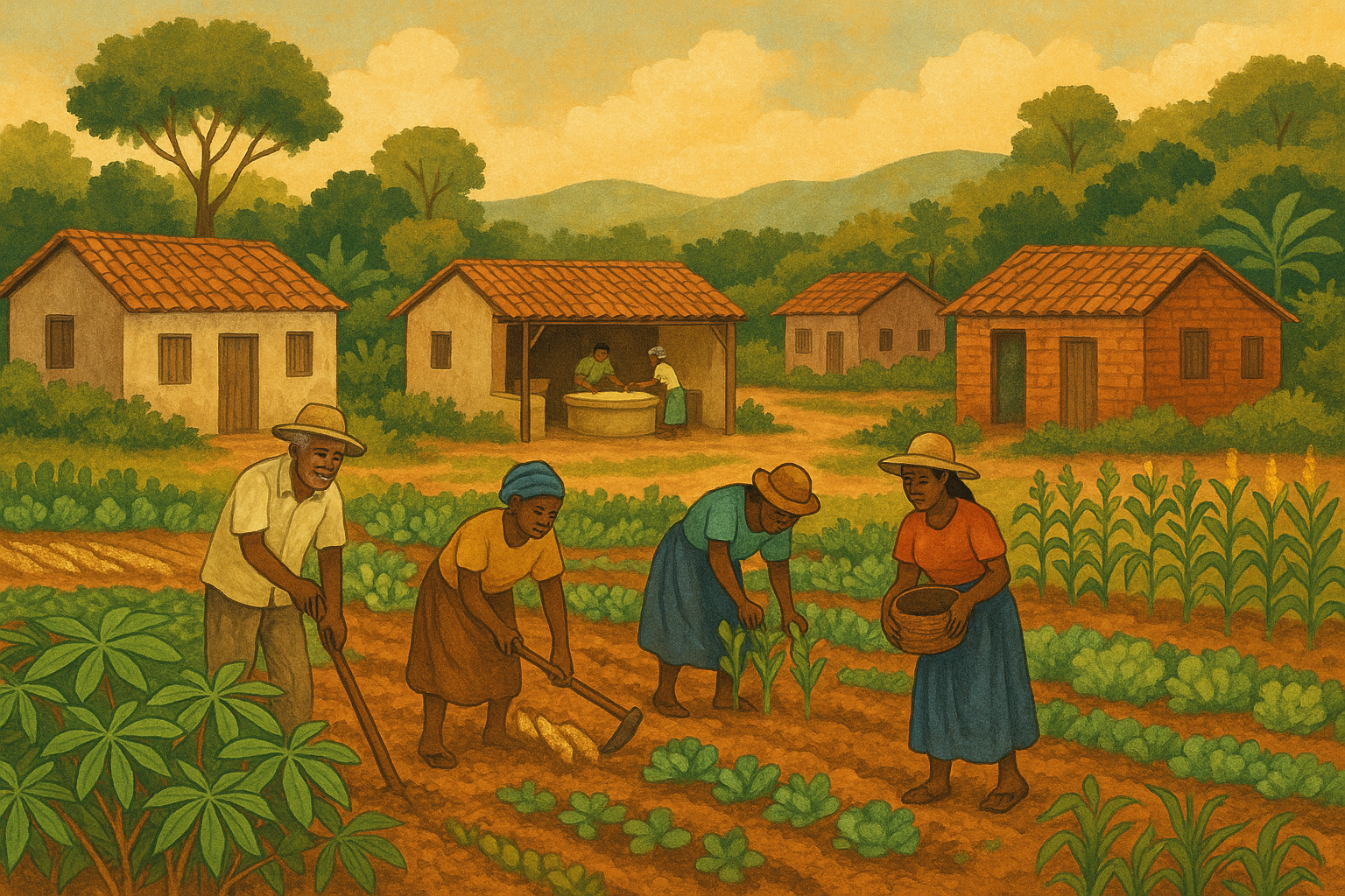 Assim nasceram os primeiros agrupamentos de famílias que, com o tempo, transformaram o refúgio em moradia e a sobrevivência em modo de vida. O alto do terreno oferecia vista para as ruínas do antigo engenho e proteção contra as tropas que caçavam fugitivos. Era o mesmo “giral grande” de que falavam os mais velhos — uma estrutura de madeira usada para observar o caminho e garantir a segurança — símbolo da vigilância e da liberdade.